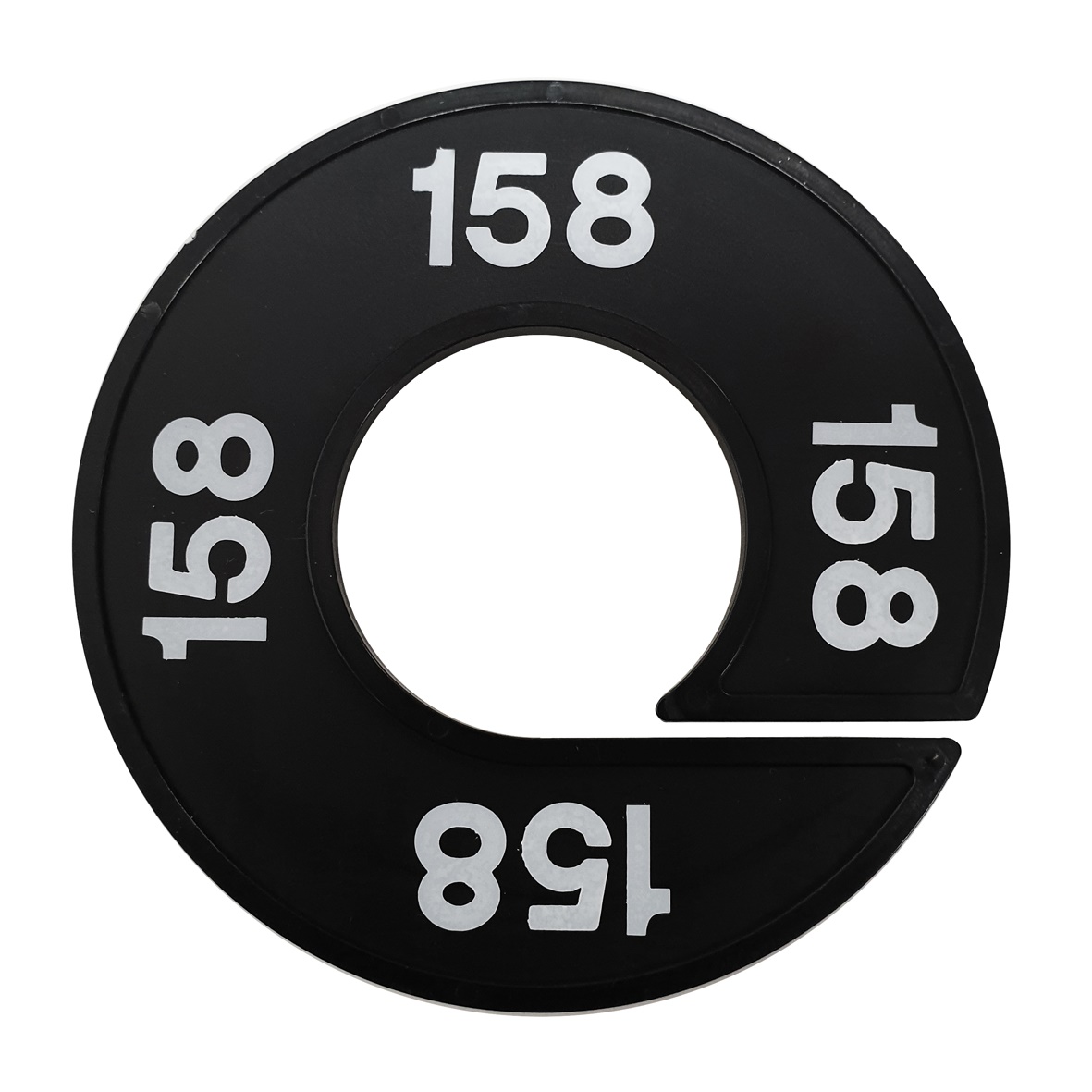 Maatschijf in het zwart met witte opdruk voor maat 158.
