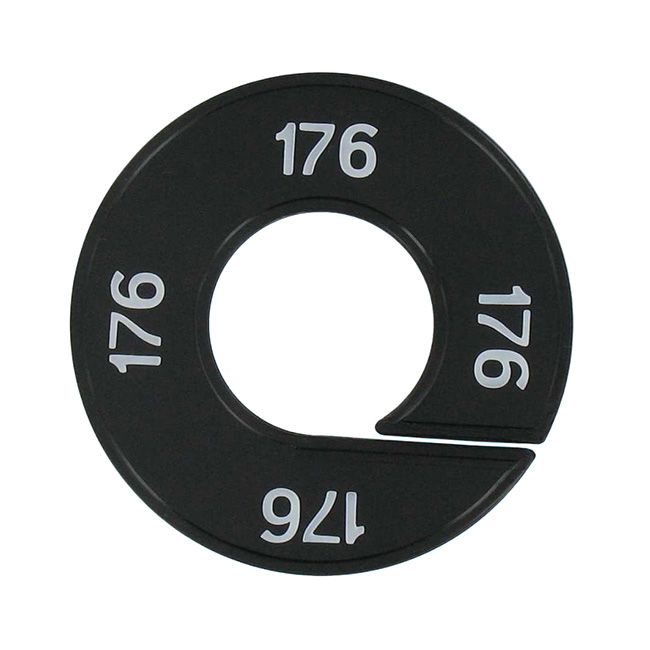 Geschikt om aan een kledingrek te bevestigen en zo de maat van de kledingstukken te presenteren.