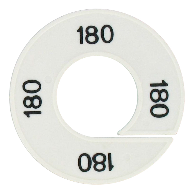 Maatschijf in het wit met zwarte opdruk voor maat 180.