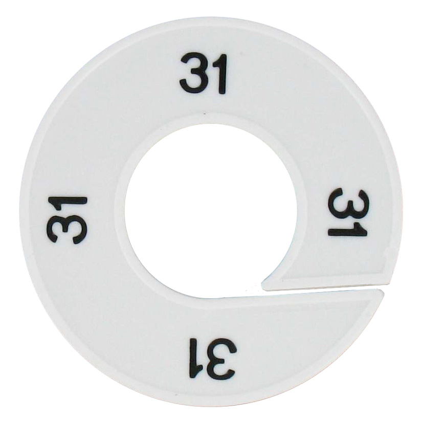 Maatschijf in het wit met zwarte opdruk voor maat 31.