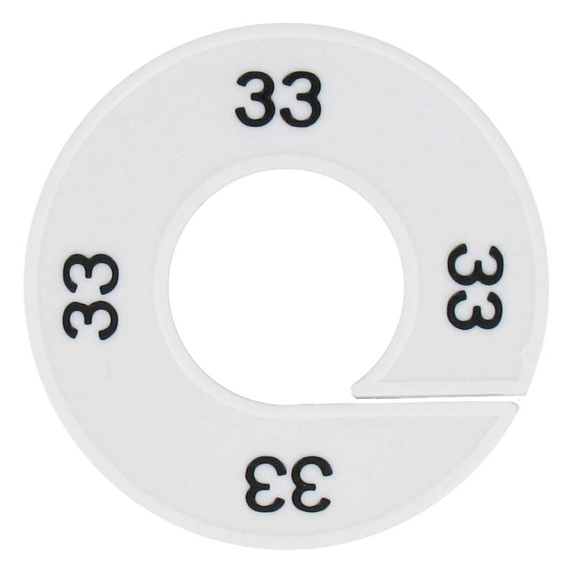 Maatring 33 wit zwart 9cm.