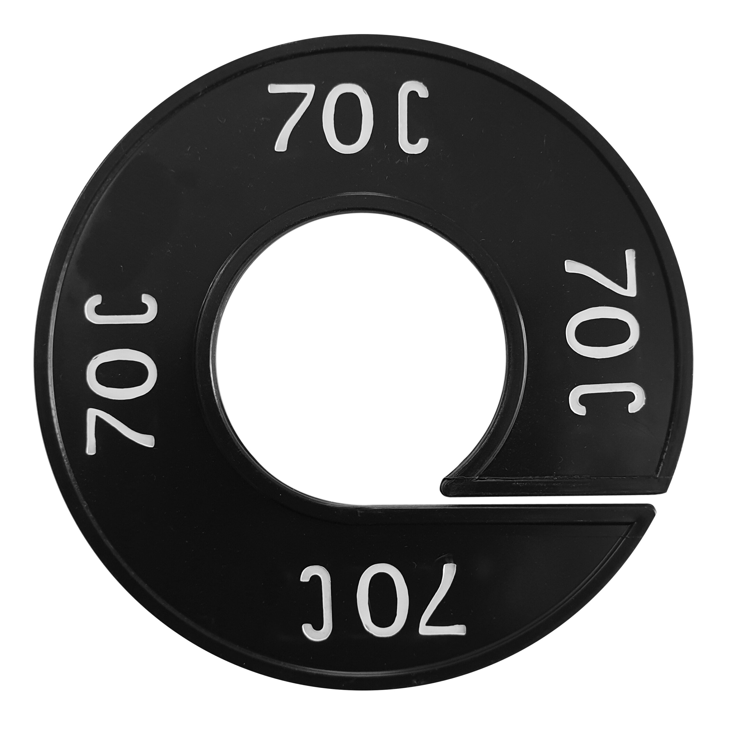 Geschikt om aan een kledingrek te bevestigen en zo de maat van de kledingstukken te presenteren.