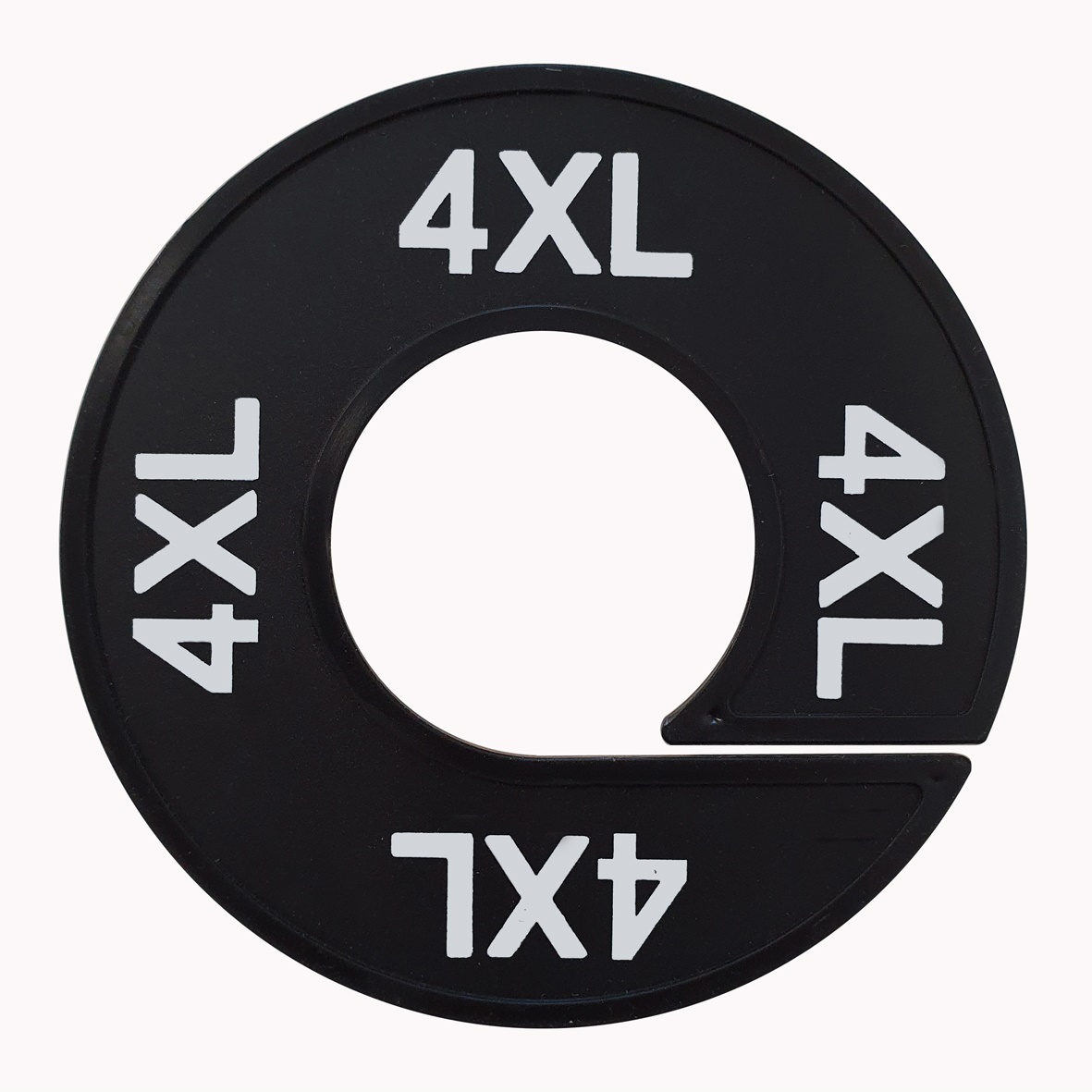 Maatschijf in het zwart met witte opdruk voor maat 4XL.