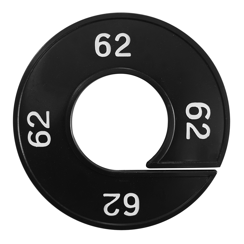Maatschijf in het zwart met witte opdruk voor maat 62.