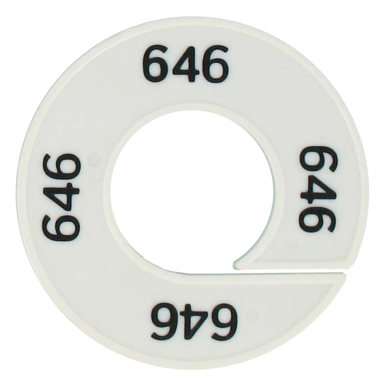 Maatschijf in het wit met zwarte opdruk voor maat 646.