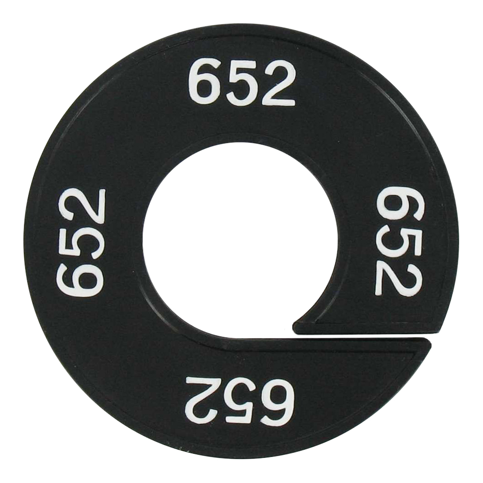 Maatschijf in het zwart met witte opdruk voor maat 652.