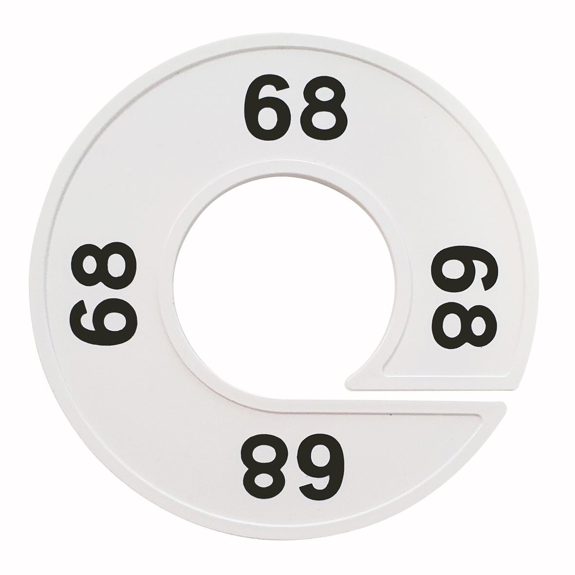 Geschikt om aan een kledingrek te bevestigen en zo de maat van de kledingstukken te presenteren.