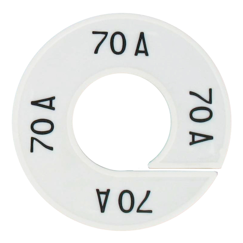 Maatschijf in het wit met zwarte opdruk voor maat 70A.