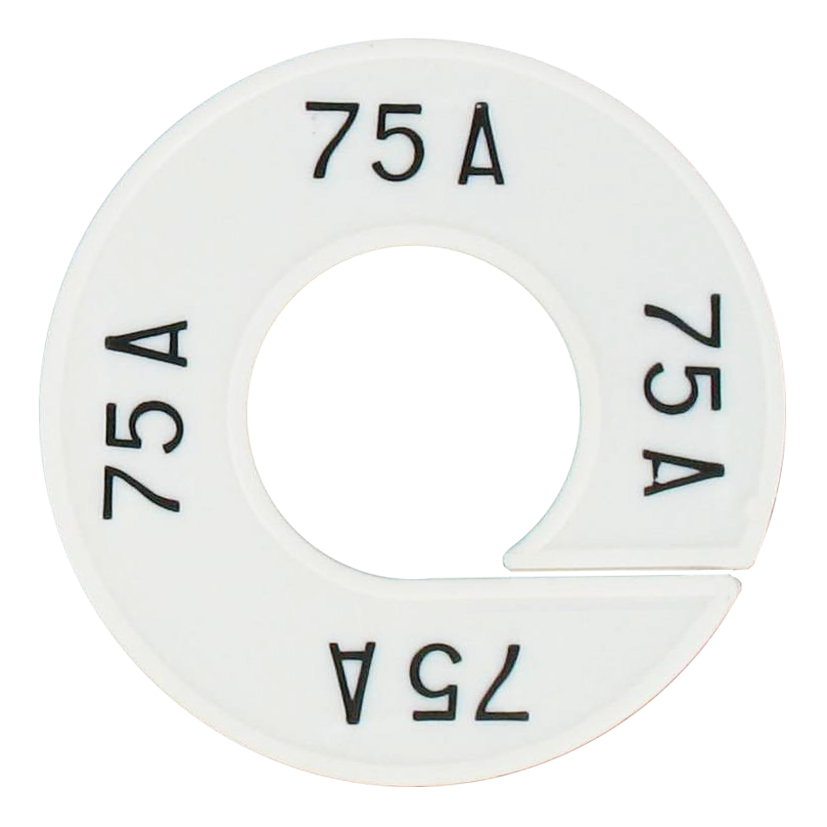 Maatschijf in het wit met zwarte opdruk voor maat 75A.