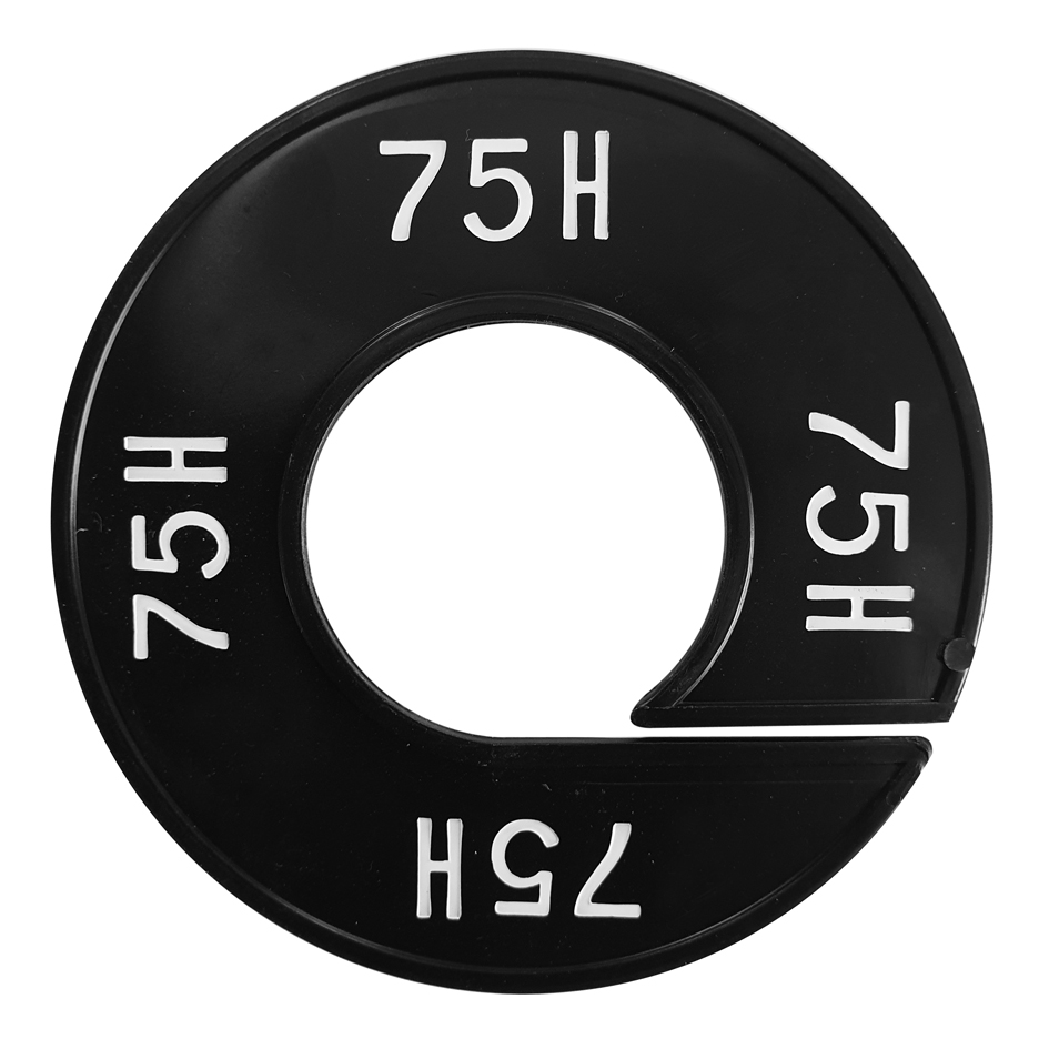 Maatschijf in het zwart met witte opdruk voor maat 75H.