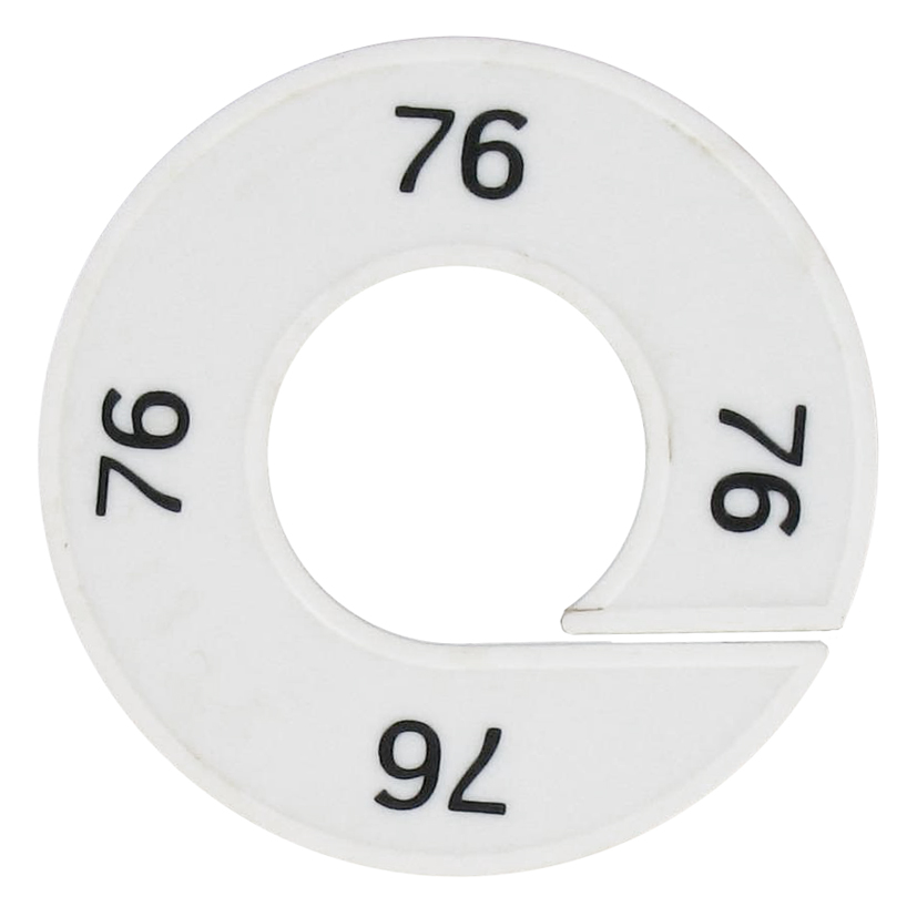 Maatschijf in het wit met zwarte opdruk voor maat 79.