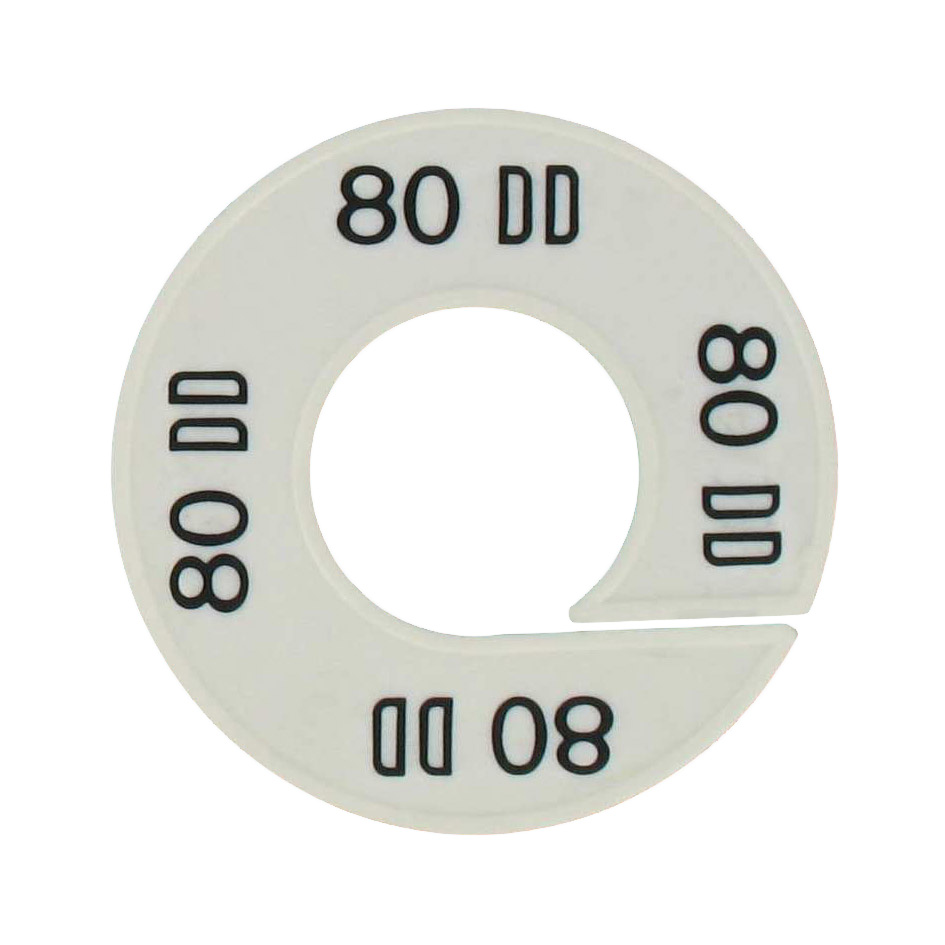 Maatschijf in het wit met zwarte opdruk voor maat 80DD.
