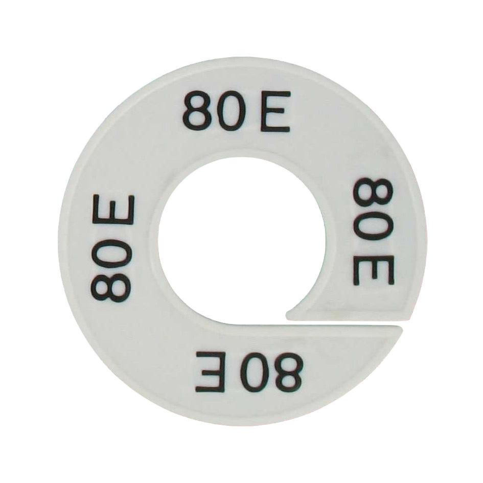Maatschijf in het wit met zwarte opdruk voor maat 80E.