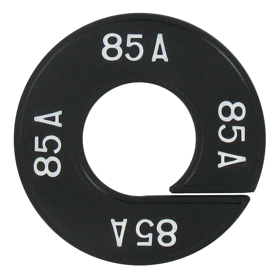Maatschijf in het zwart met witte opdruk voor maat 85A.