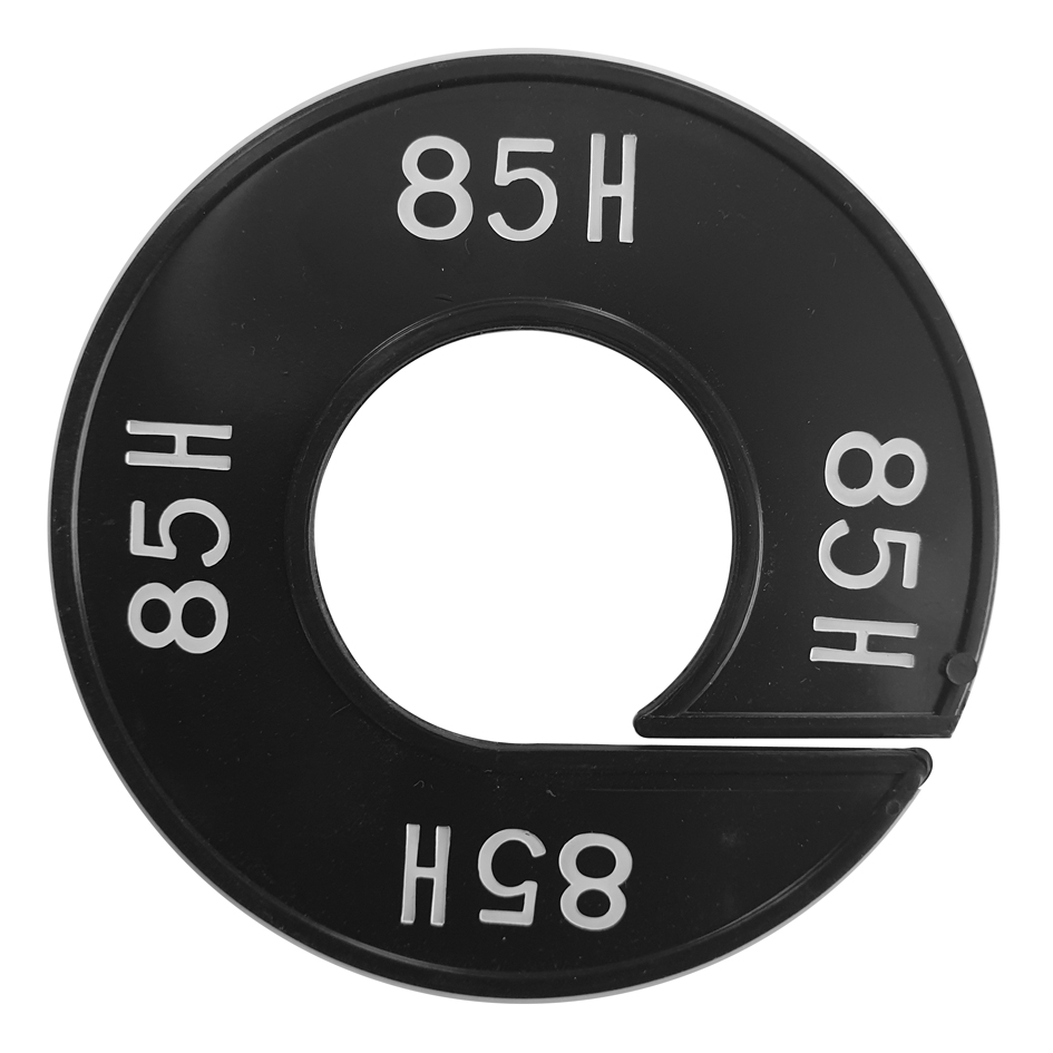 Maatschijf in het zwart met witte opdruk voor maat 85H.