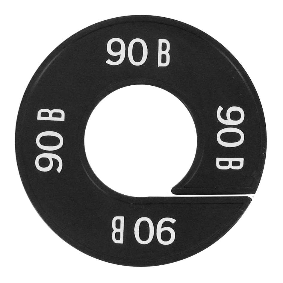 Maatschijf in het zwart met witte opdruk voor maat 90B.