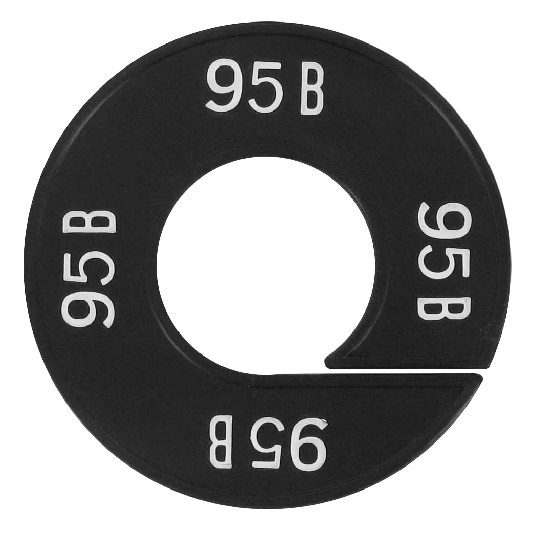 Maatschijf in het zwart met witte opdruk voor maat 95B.