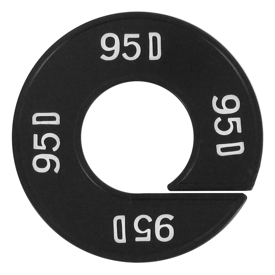 Maatschijf in het zwart met witte opdruk voor maat 95D.