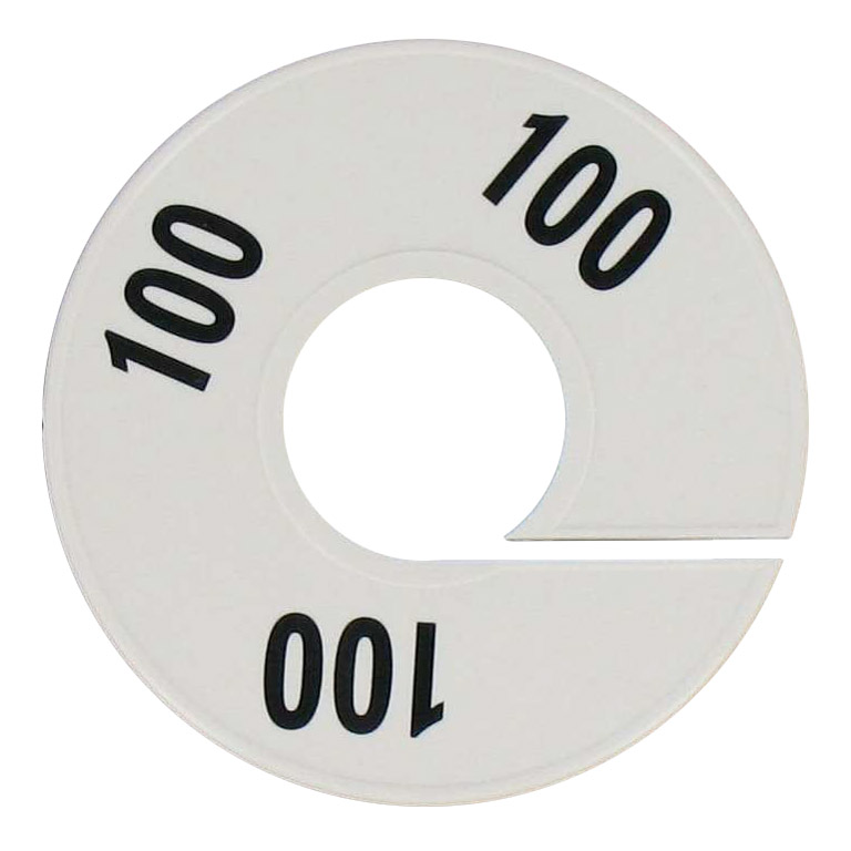 Maatschijf in het wit met zwarte opdruk voor maat 100.