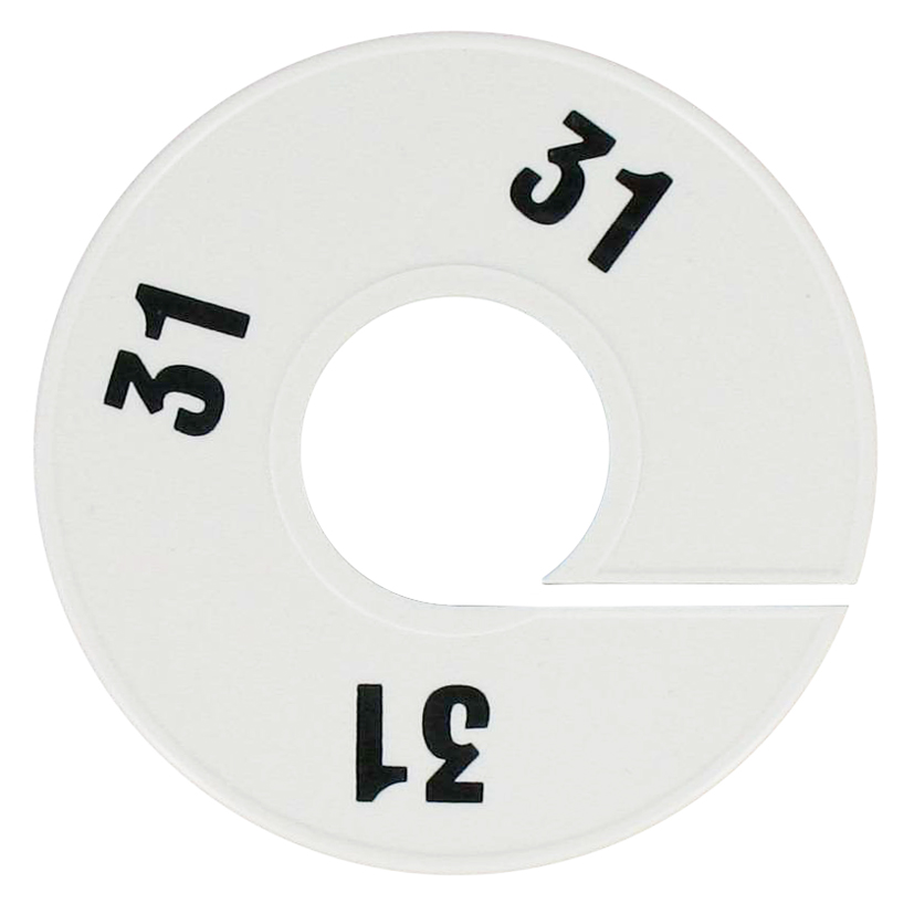 Maatschijf in het wit met zwarte opdruk voor maat 31.