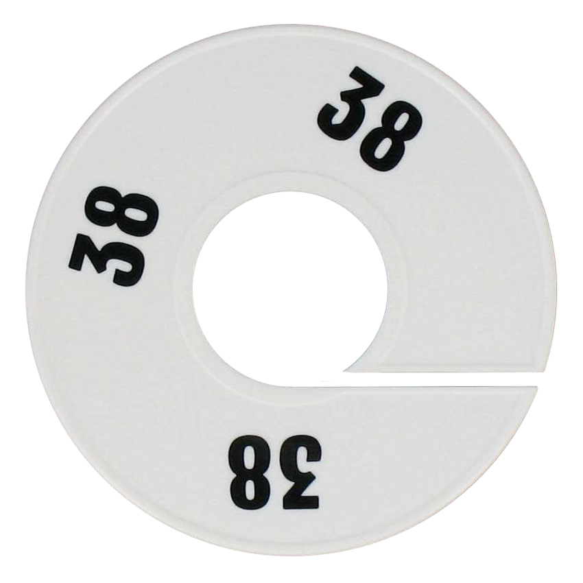 De ringen zijn geschikt voor een buis van maximaal 4cm, zoals een kledingrek. Met de maatringen kunnen de maten van kledingstukken worden gepresenteerd.
