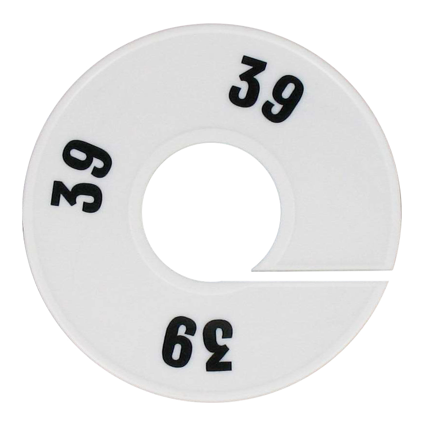 Maatschijf in het wit met zwarte opdruk voor maat 39.