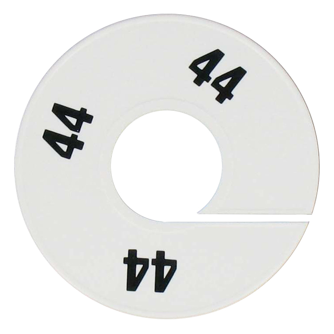 Maatschijf in het wit met zwarte opdruk voor maat 44.
