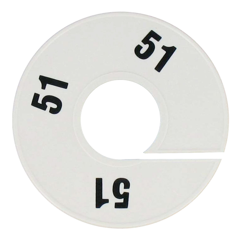 Maatschijf in het wit met zwarte opdruk voor maat 51.