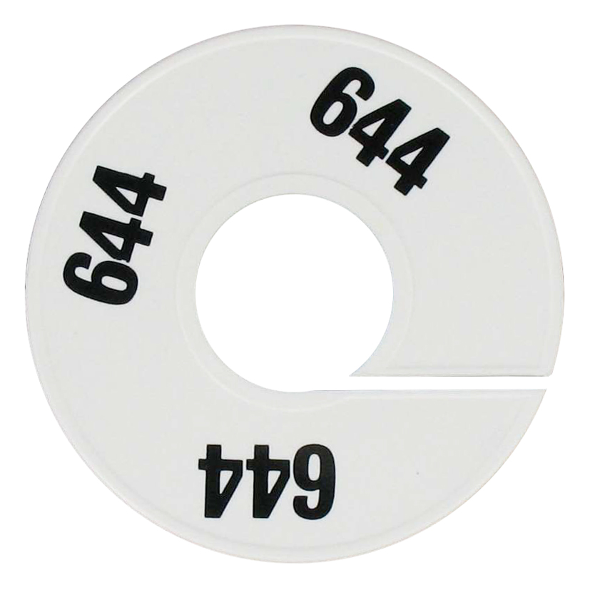 Maatschijf in het wit met zwarte opdruk voor maat 644.