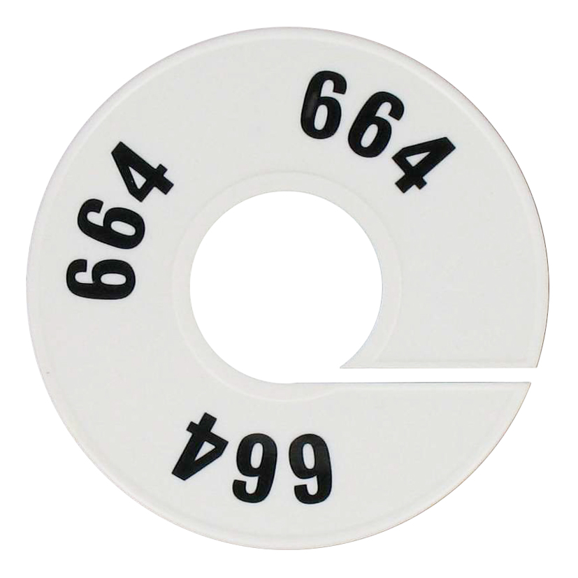 Maatschijf in het wit met zwarte opdruk voor maat 664.