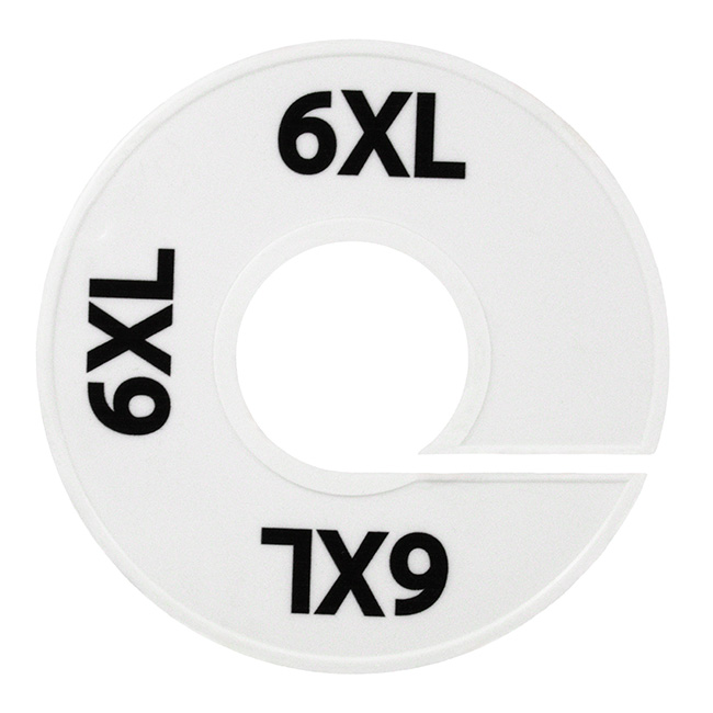 Maatschijf in het wit met zwarte opdruk voor maat 6XL.
