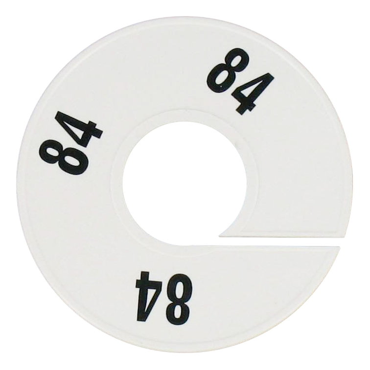 Maatschijf in het wit met zwarte opdruk voor maat 84.
