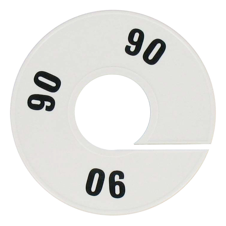 Maatschijf in het wit met zwarte opdruk voor maat 90.