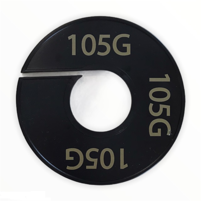 Maatschijf in het zwart met goudkleurige opdruk voor maat 105G.