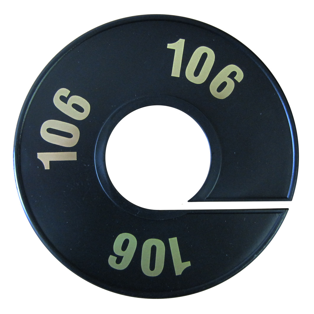 Maatschijf in het zwart met goudkleurige opdruk voor maat 106.