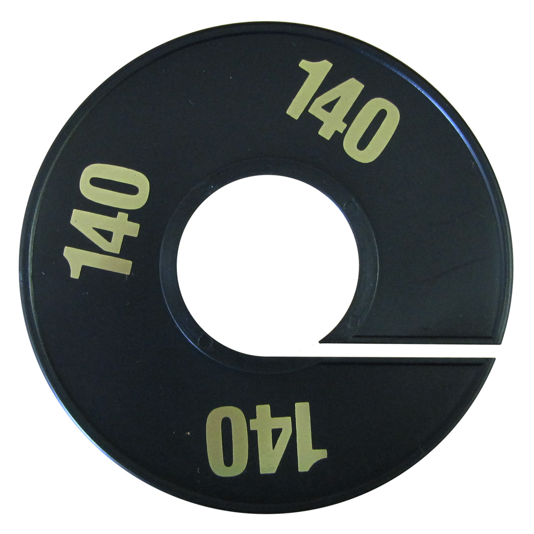 Maatschijf in het zwart met goudkleurige opdruk voor maat 140.