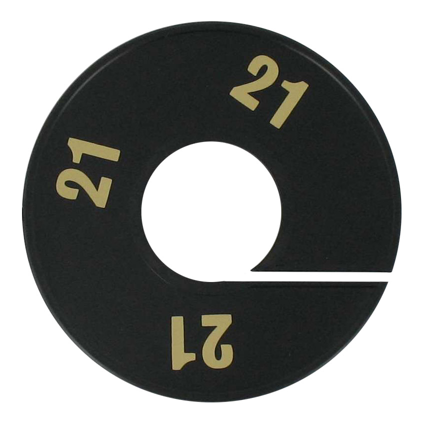 Maatschijf in het zwart met goudkleurige opdruk voor maat 21.