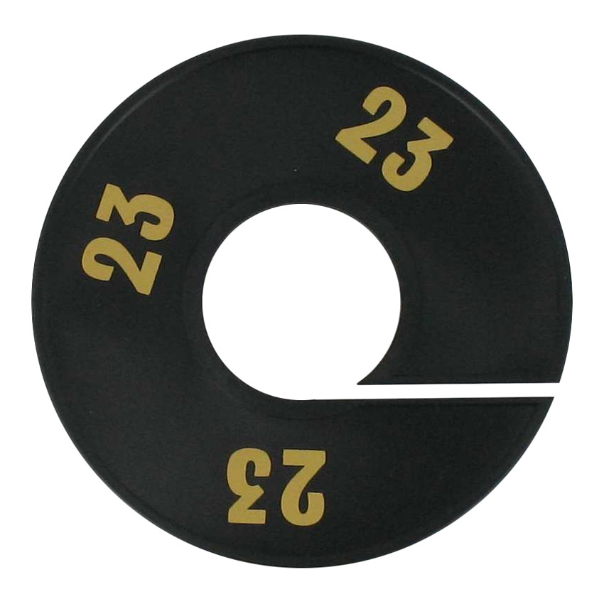 Maatschijf in het zwart met goudkleurige opdruk voor maat 23.