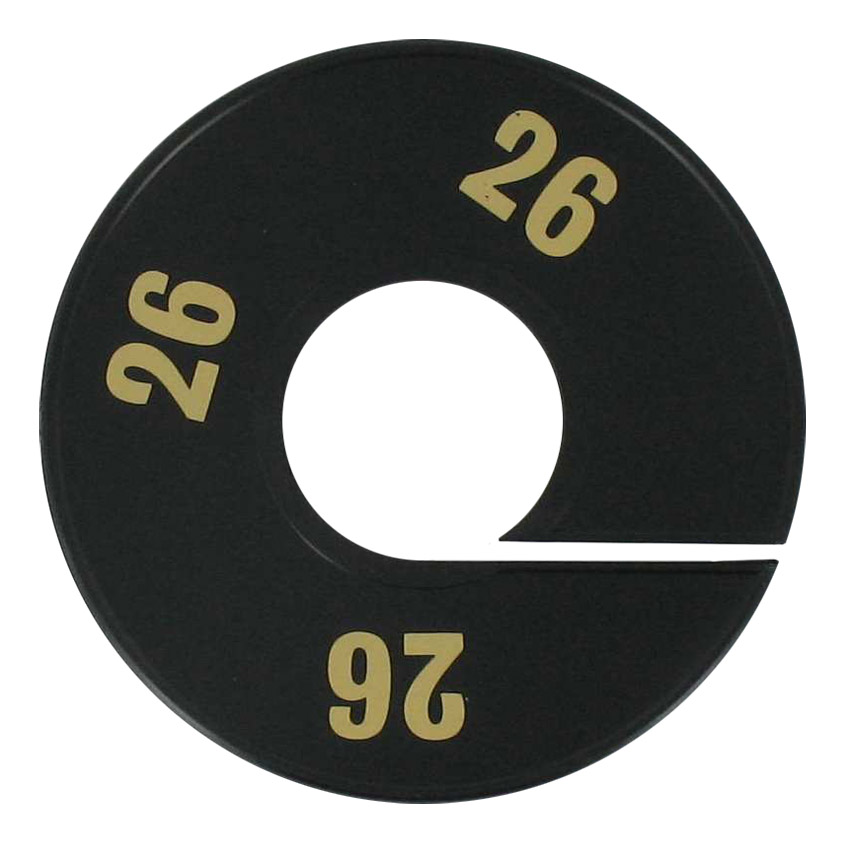 Maatschijf in het zwart met goudkleurige opdruk voor maat 26.