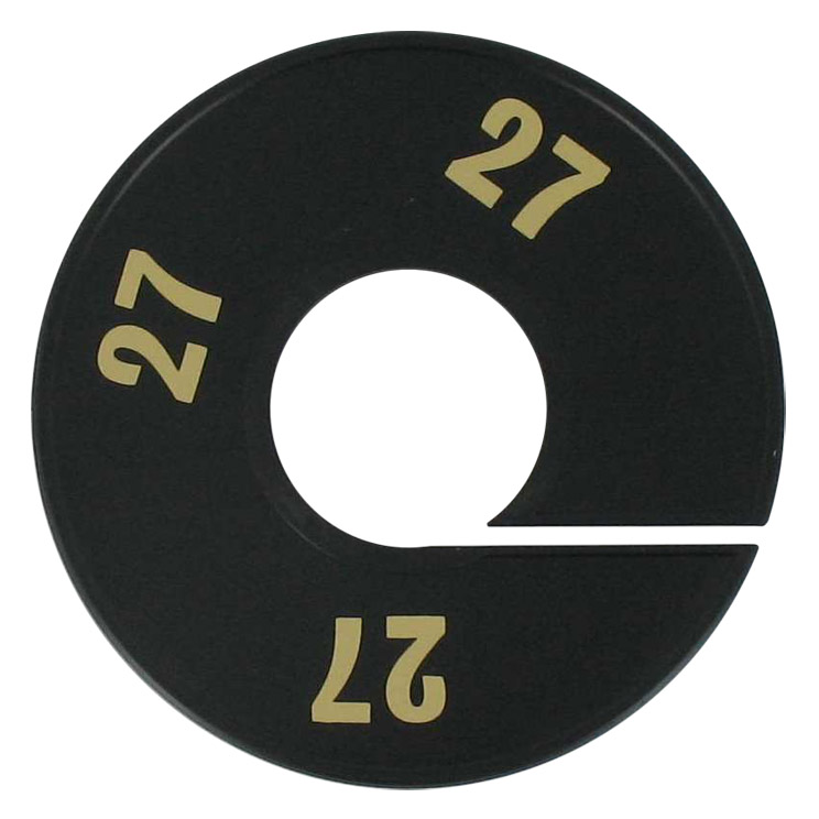 Maatschijf in het zwart met goudkleurige opdruk voor maat 27.