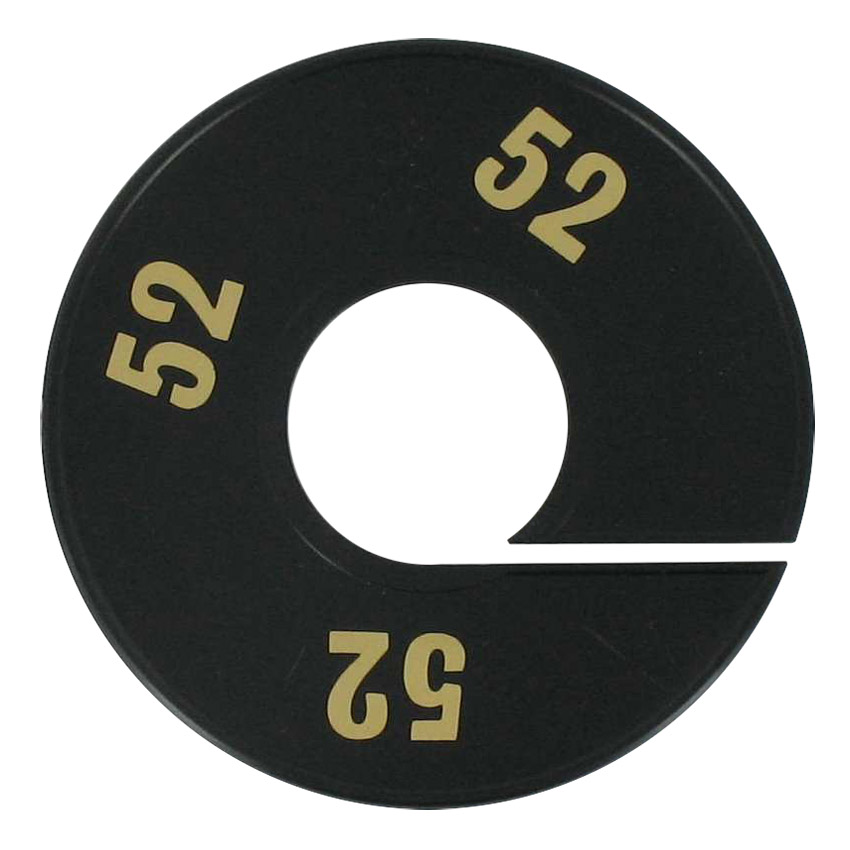 Maatschijf in het zwart met goudkleurige opdruk voor maat 52.