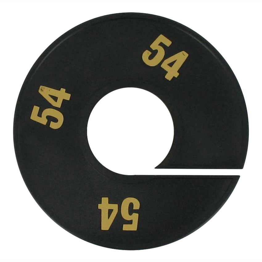 Maatschijf in het zwart met goudkleurige opdruk voor maat 54.