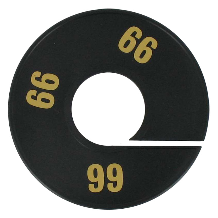Maatschijf in het zwart met goudkleurige opdruk voor maat 66.