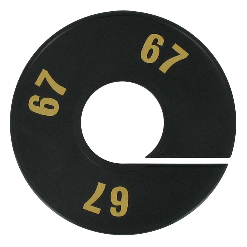Maatschijf in het zwart met goudkleurige opdruk voor maat 67.