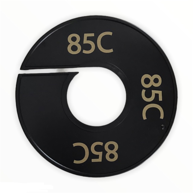 Maatschijf in het zwart met goudkleurige opdruk voor maat 85C.