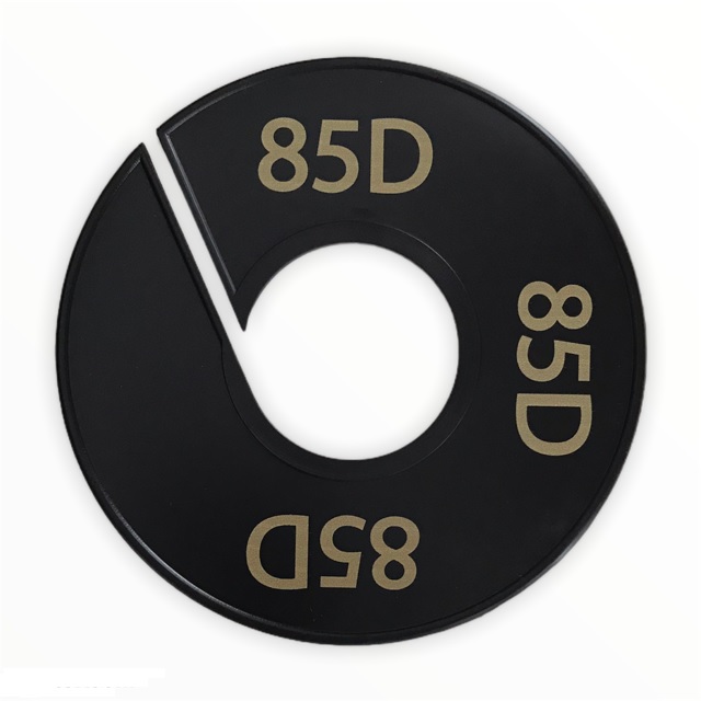 Maatschijf in het zwart met goudkleurige opdruk voor maat 85D.