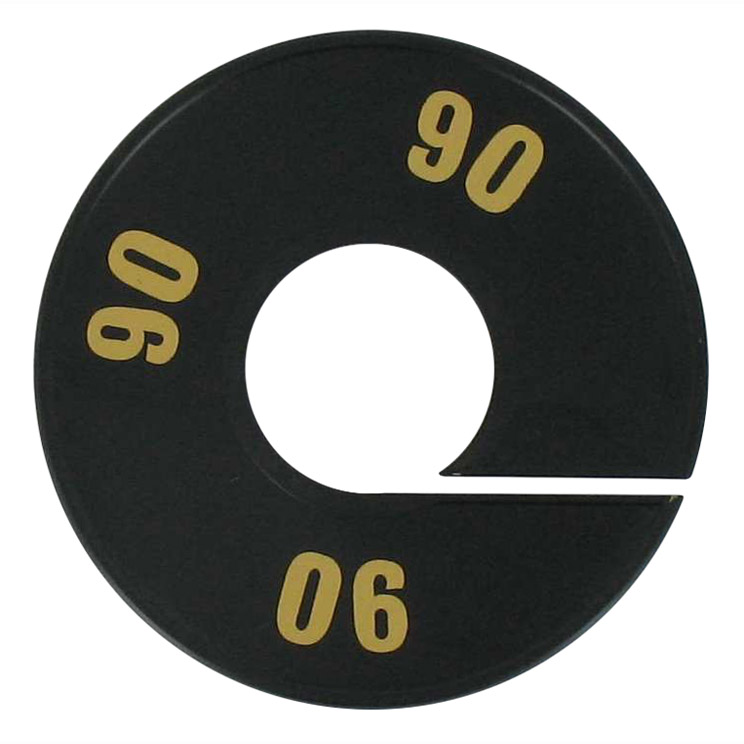 Maatschijf in het zwart met goudkleurige opdruk voor maat 90.