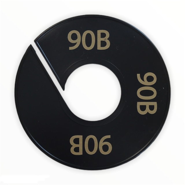 Maatschijf in het zwart met goudkleurige opdruk voor maat 90B.