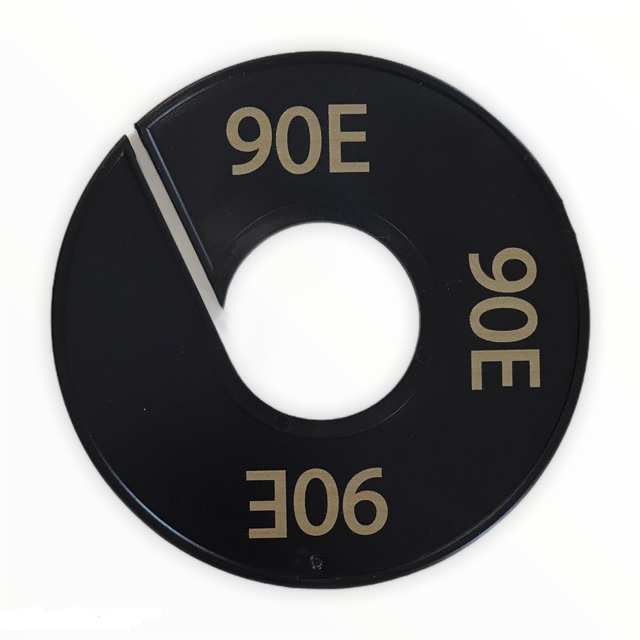 Maatschijf in het zwart met goudkleurige opdruk voor maat 90E.