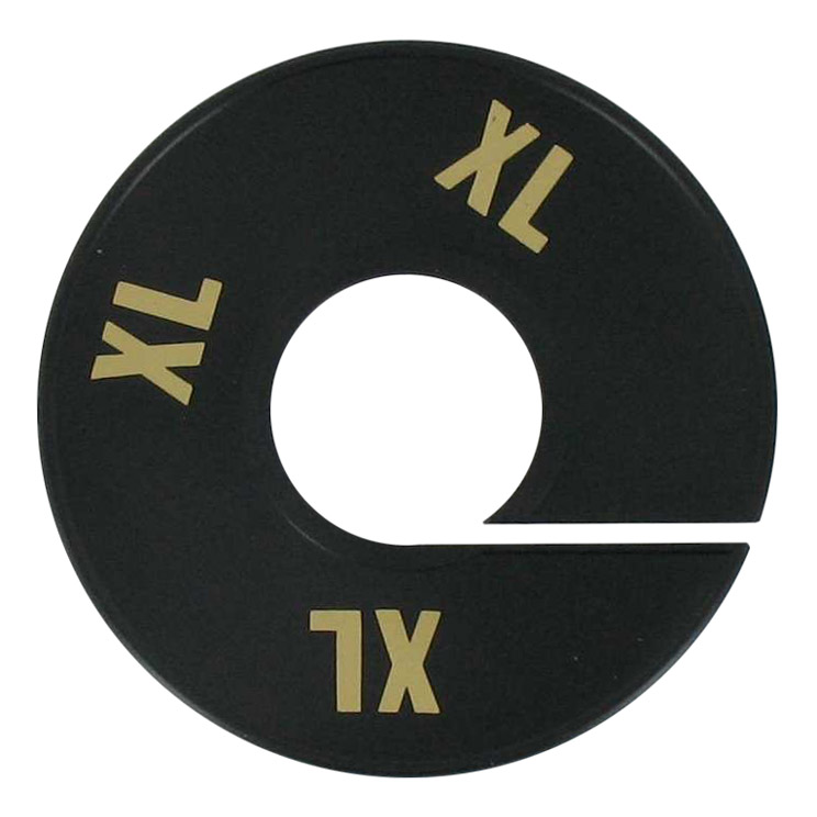 Maatschijf in het zwart met goudkleurige opdruk voor maat XL.
